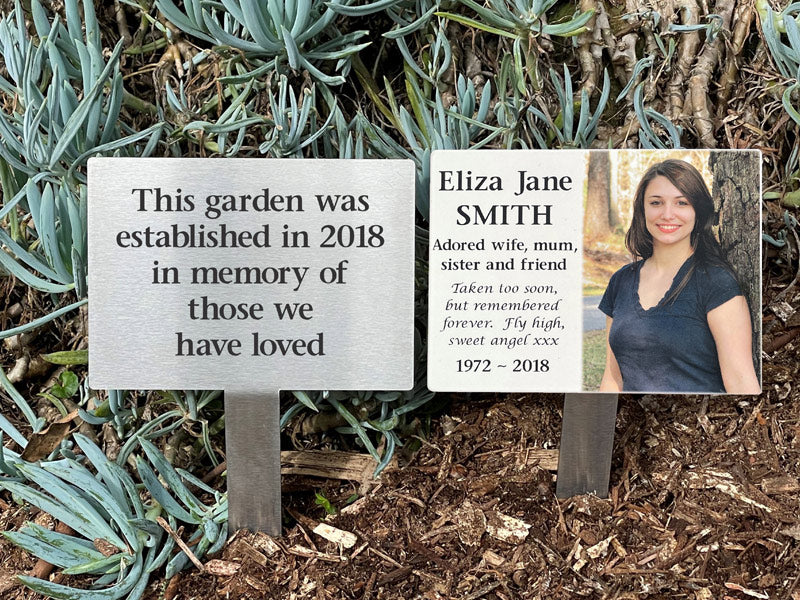 Two sizes with the option of an all-weather full colour photo ceramic on the large style.